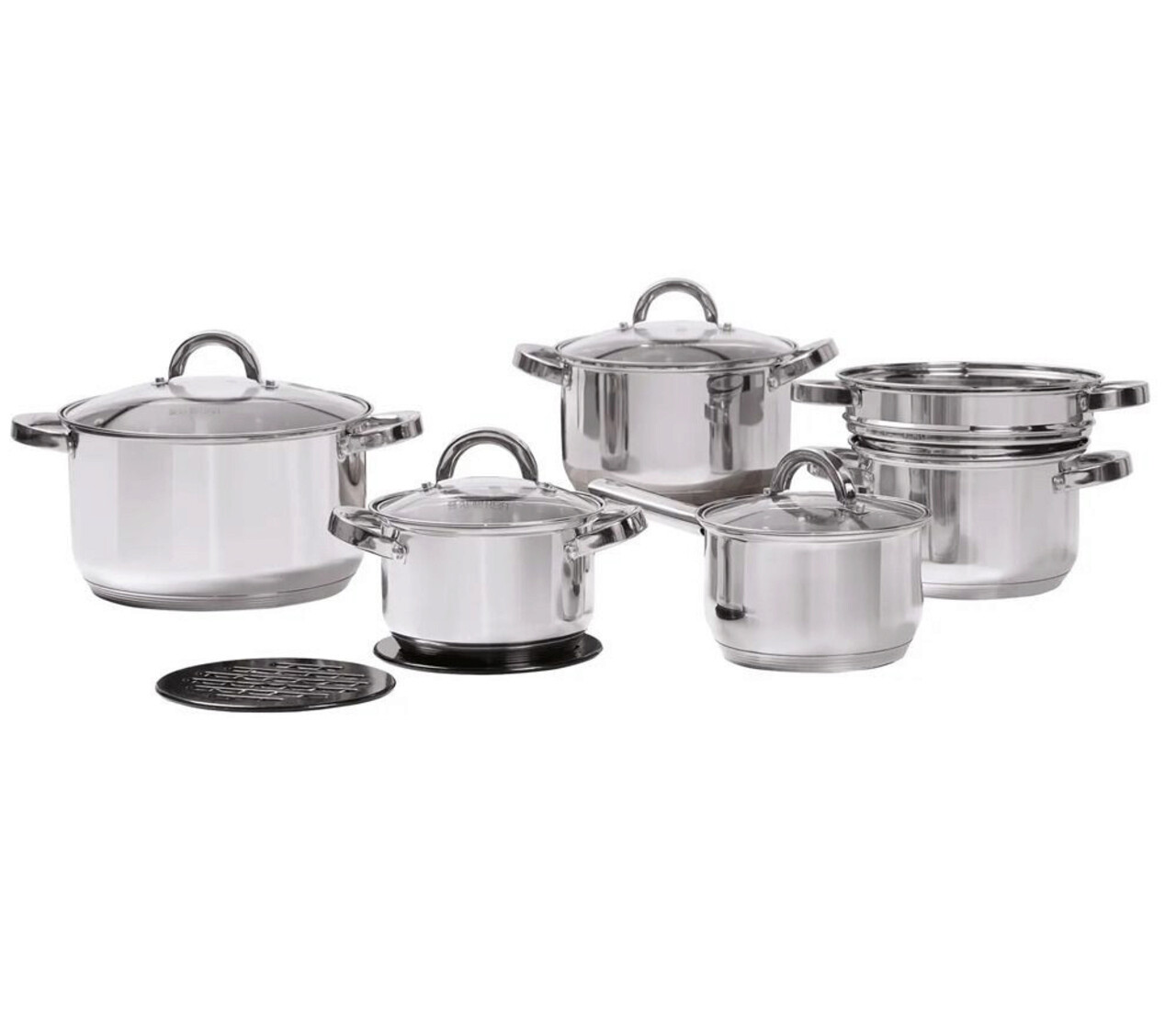 Set de oale Ambition din otel inoxidabil alcatuit din 13 piese. Oalele din colectia Berry au un aspect modern, insa totodata simplu si practic, cu manere confortabile, si o scara pentru masurare in interior. Cu o baza alcatuita din 3 straturi, oalele pot fi folosite pentru a gati pe toate tipurile de aragaze, inclusiv cele cu inductie, si se pot curata in masina de spalat vase. Setul contine o cratita si patru oale de dimensiuni diferite, fiecare cu capac, un insert pentru aburi si doua suporturi pentru oale.