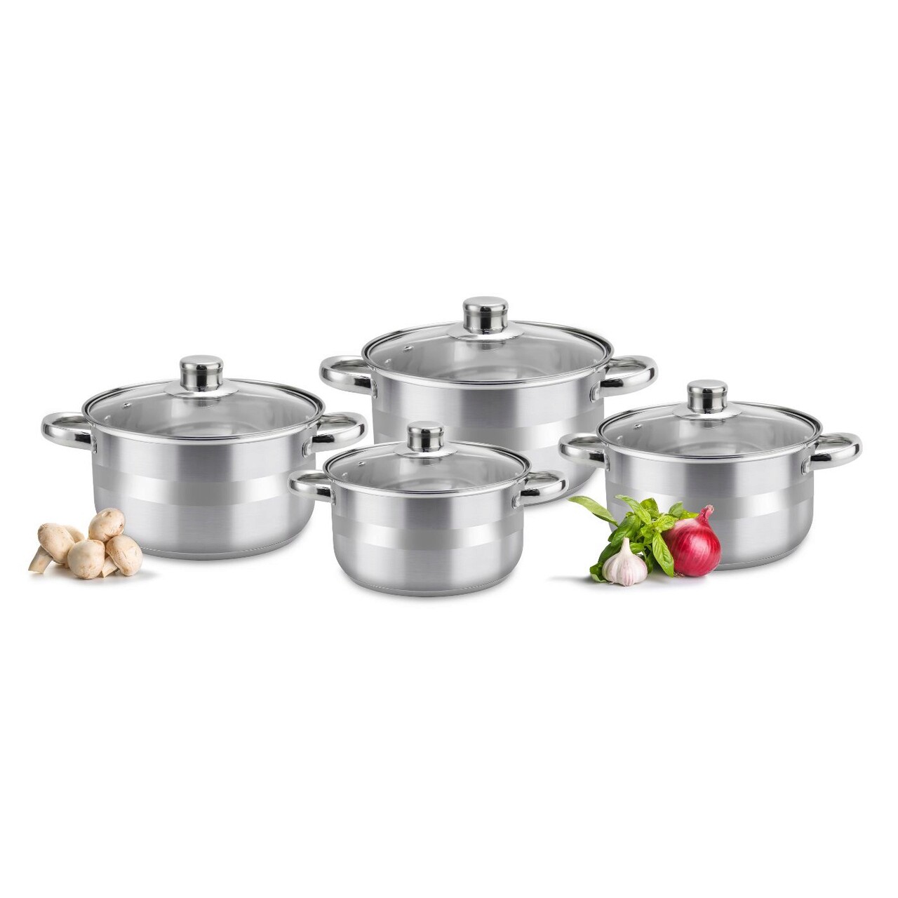 Setul de oale Domotti Molly este fabricat din otel inoxidabil cu capace din sticla securizata. Finisajul satinat elegant la exterior si finisaj oglinda din interior fac ca setul de oale sa arate foarte placut din punct de vedere estetic. Au un fund cu inductie special de tip capac multistrat care asigura o distributie perfecta a caldurii, economisindu-ne astfel timp si energie. Echipat cu capace din sticla calita, datorita carora putem observa procesul de gatire fara a fi nevoie sa le ridicam. Scara de capacitate interna este o comoditate suplimentara care va va ajuta sa masurati cantitatea potrivita de lichide, eliminand nevoia de pahare de masurare suplimentare. Poate fi folosit pe toate tipurile de aragaz. Idee de cadou perfecta pentru oricine iubeste sa gateasca. Un element esential al oricarei bucatarii moderne, care imbina functionalitatea si stilul.