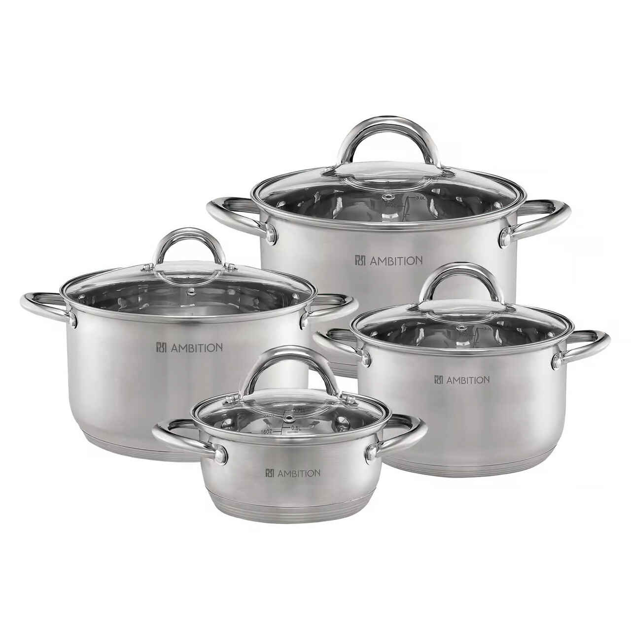 Set oale 8 piese Solar, Ambition, 1.9 L/ 2.5 L/ 3.5 L/ 6.1 L, inox/sticla, argintiu