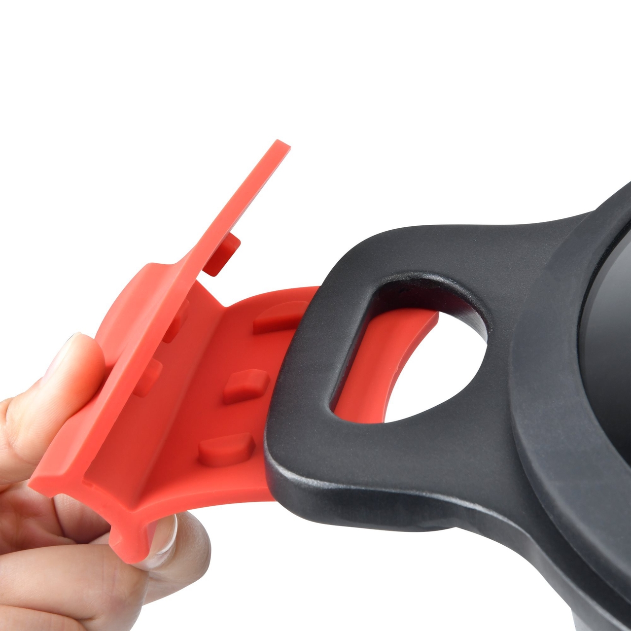 Capacele din sticla temperata prezinta un orificiu de evacuare a aburului, Margine din silicon si maner moale.