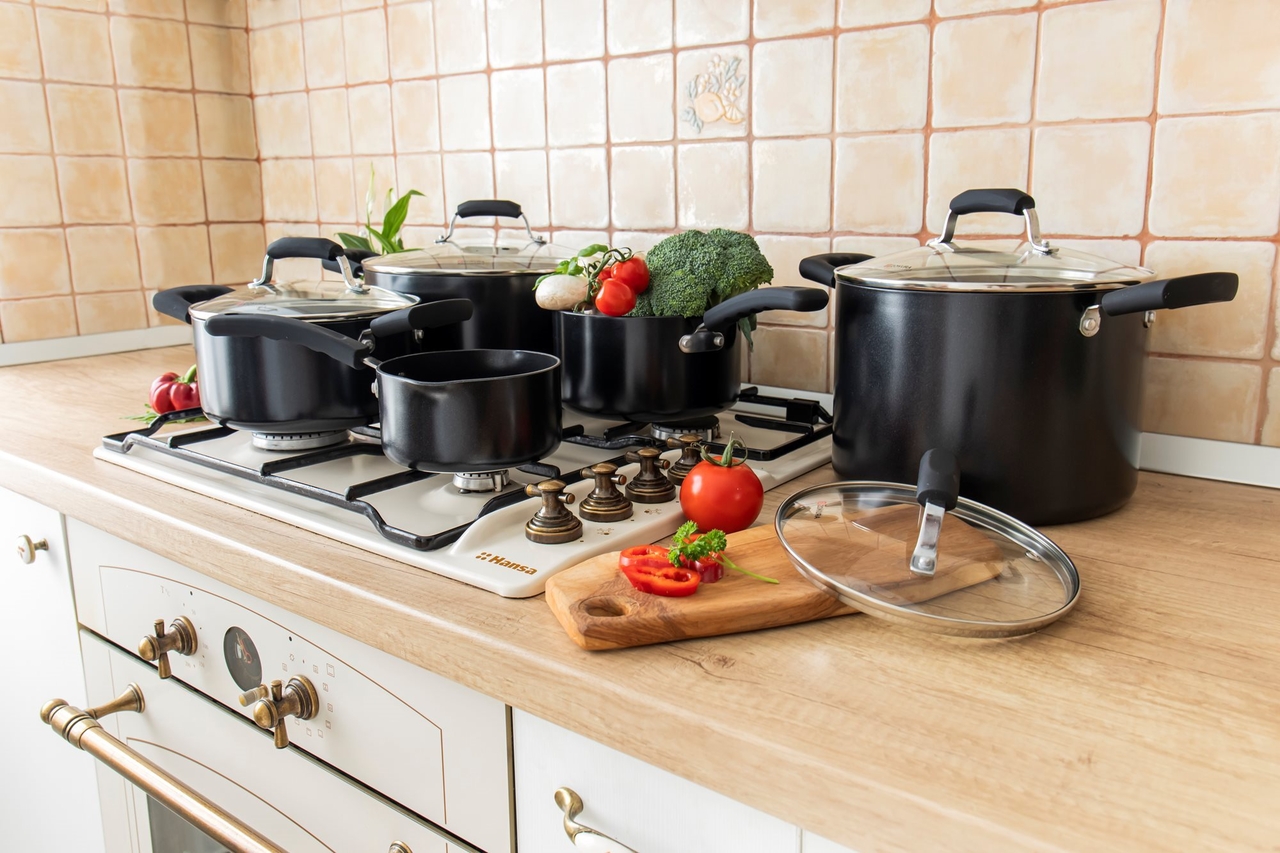 Sunt compatibile cu plita pe gaz, Electrica, Ceramica si cea cu inductie.