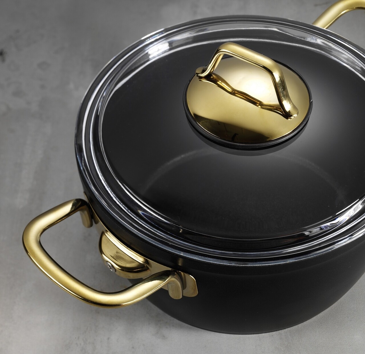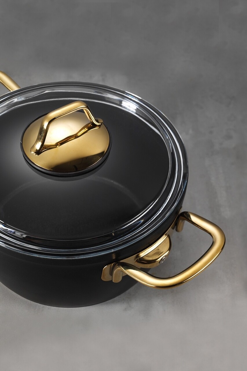 Set oale si tigai, 7 piese, Kutahya Porselen, JUL07TSGRNSYH, aluminiu/sticla, negru/auriu
