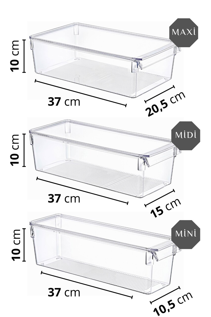 Set organizatoare frigider, Hermia, 639OKK1123, Dimensiune medie: 37 x 15 x 10 cm (3 bucăți), Transparent