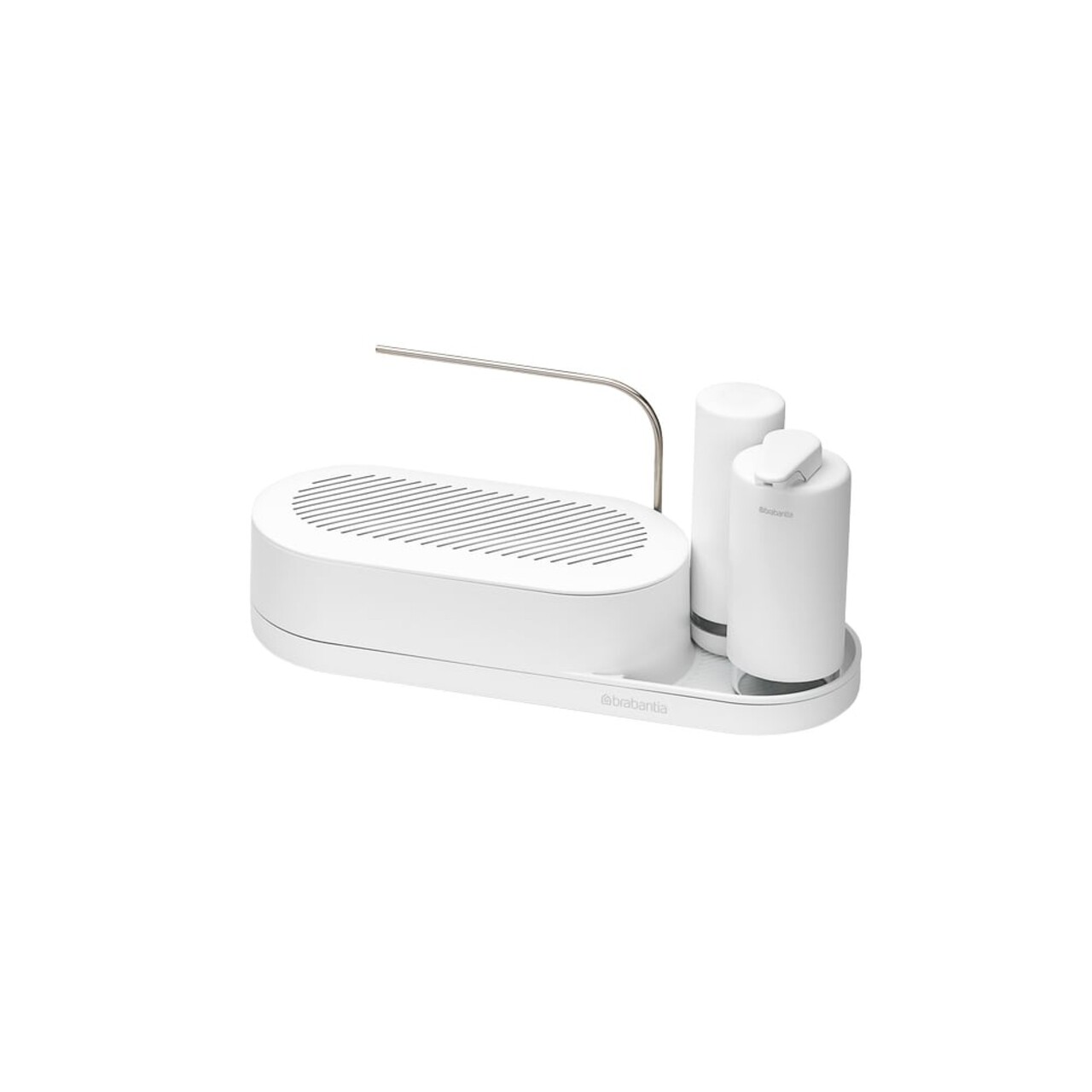Set organizator chiuveta si dozator sapun 3 piese, Brabantia, SinkStyle Mineral, 35x13x16 cm, plastic, alb