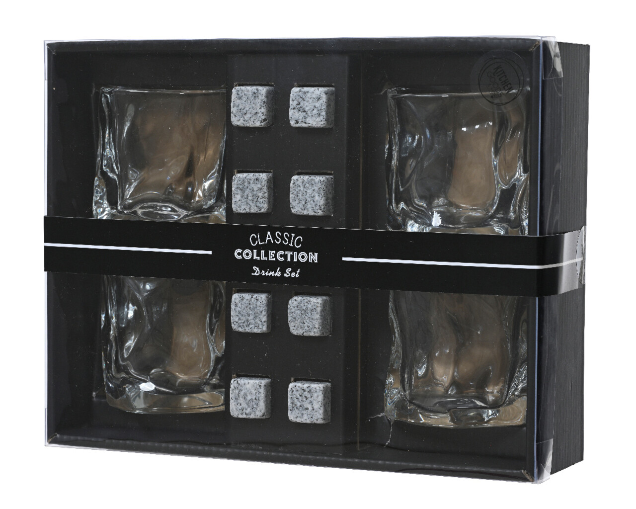 Set pahare si cuburi pentru whisky 12 piese, Decoris, sticla, argintiu