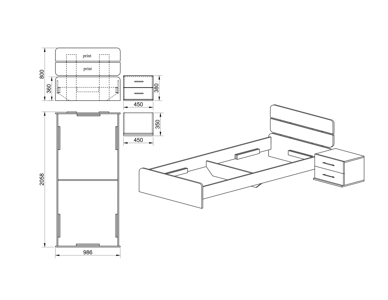 Set pat cu noptiera pentru camera copilului, Bedora, City 2013, 206 x 99 x 80 cm, PAL, sonoma/alb