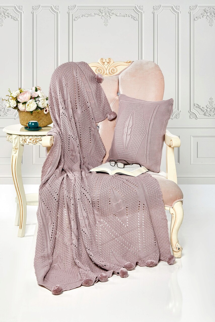 Set patura si perna Single Tricot 130x170 cm, 45x45 cm, Ponpon Tree - Lilac, Evlen Home - Bedroom, Acril
