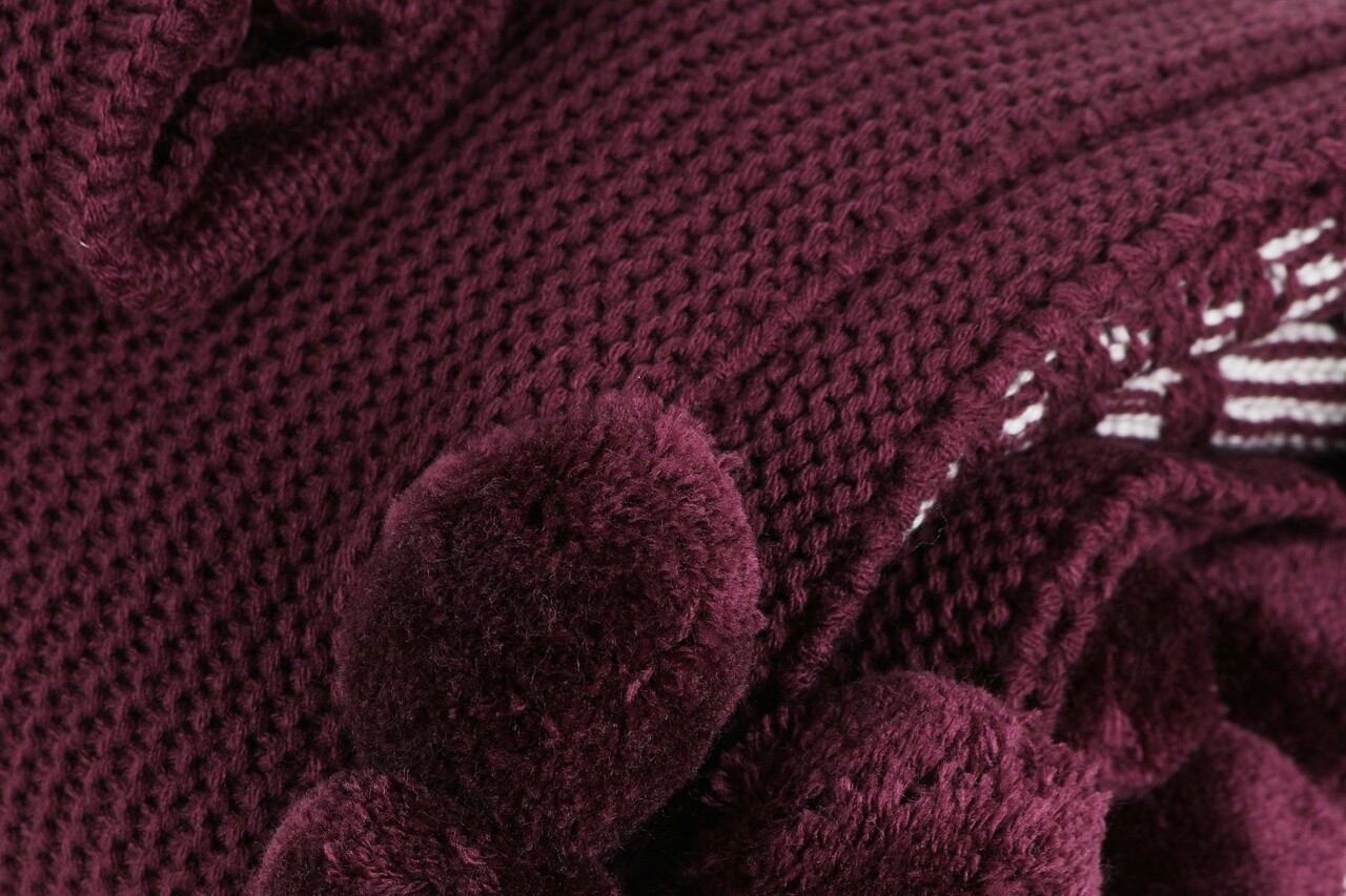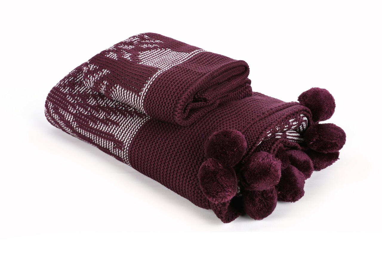 Set patura si perna Single Tricot 130x170 cm, 45x45 cm, Ponpon Tree - Claret Red, Evlen Home - Bedroom, Acril