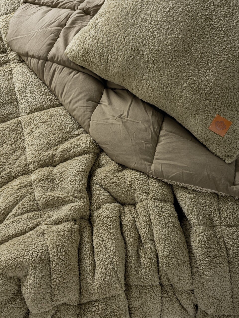 Set pilota dublu si perna, Pelus - Stone, Cotton Box, Poliester