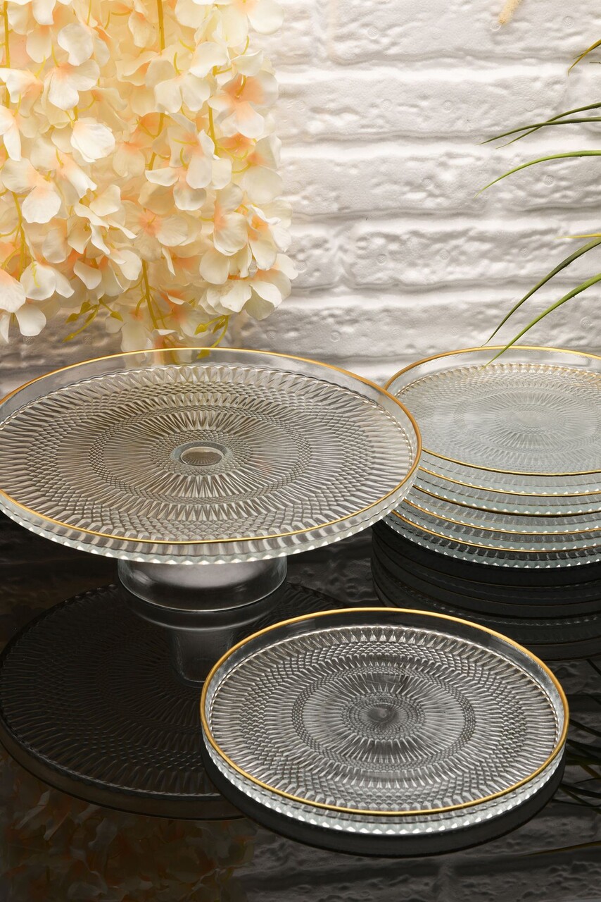 Set platouri servire desert, Hermia, 330SBL1103, Farfurie: 21 cm (6 bucăți), Transparent