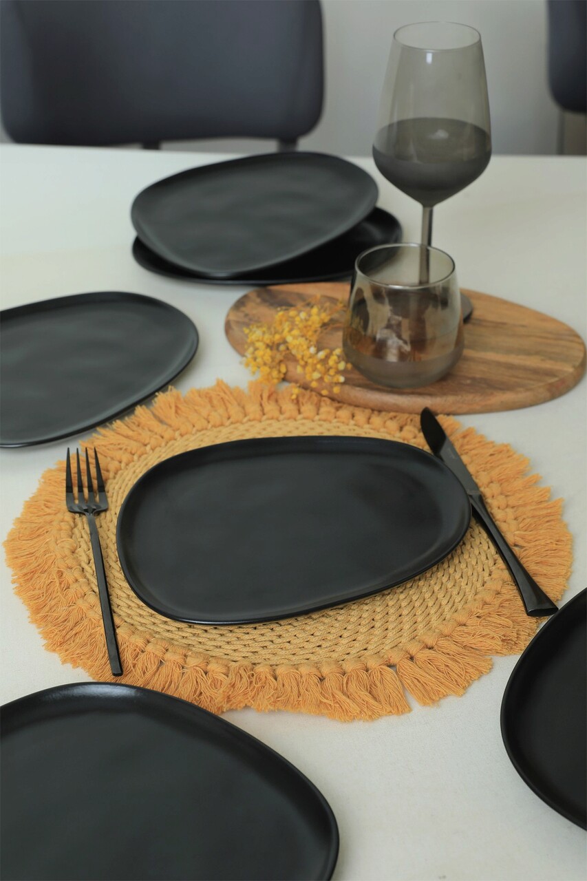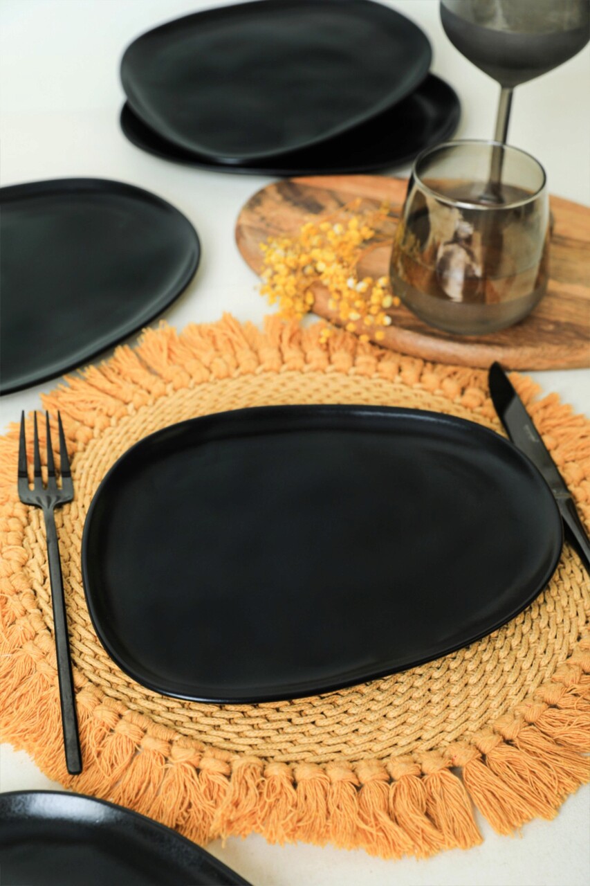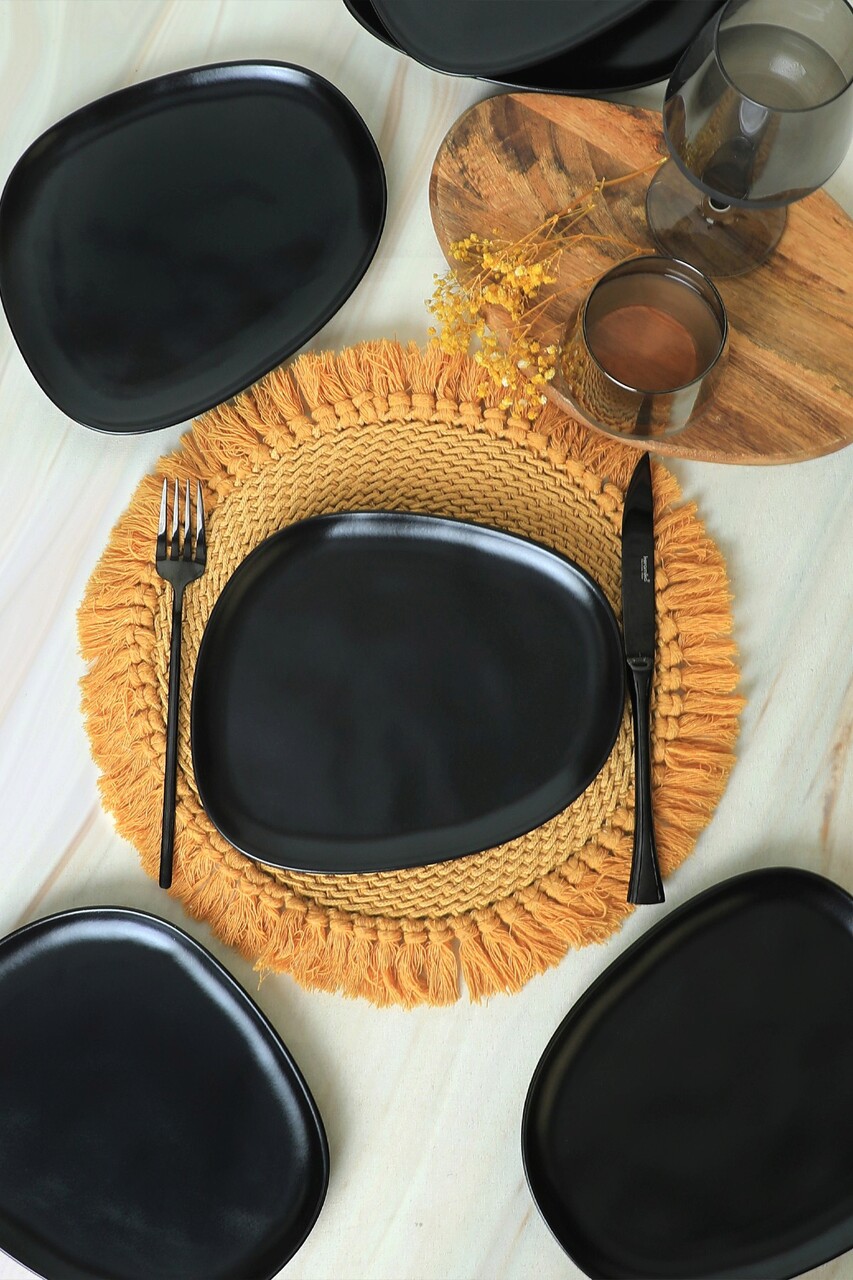 Set platouri servire desert, Keramika, 275KRM2208, Ceramica , Nu absoarbe apa, Negru mat