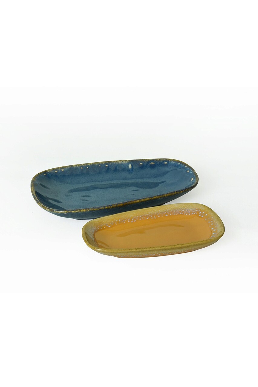 Set platouri servire, Keramika, 275KRM2227, Ceramica , Nu absoarbe apa, Muștar / Albastru