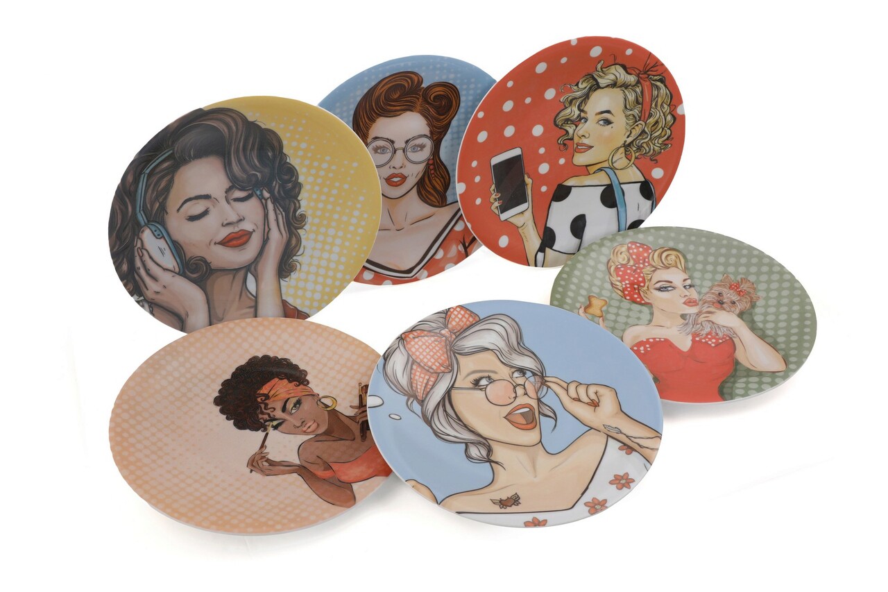 Set platouri servire, Kütahya Porselen, 710KTP9346, Portelan , Dimensiune: 25 x 25 x 2 cm (6 bucăți), Multicolor