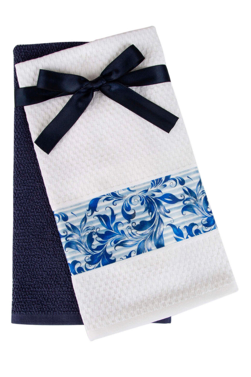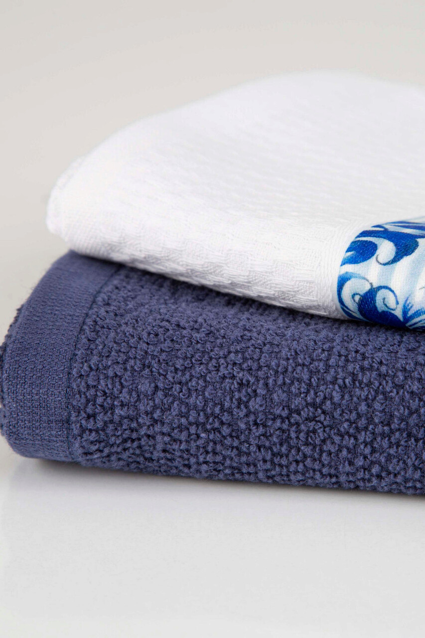 Set prosoape (2 bucăți), Irya Home, Cora, Bumbac, Alb / Albastru / Albastru închis