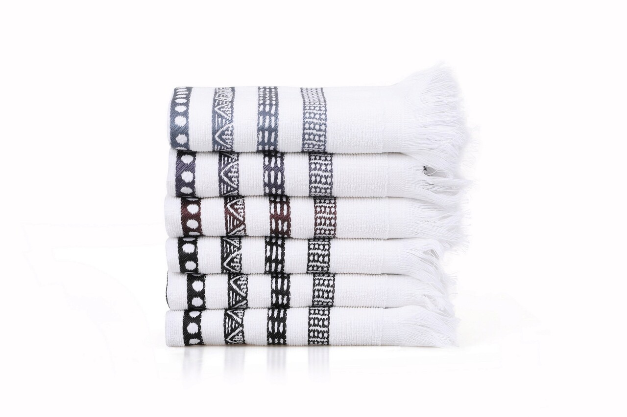 Set prosoape 6 piese, Şaheser, Tivoli, Bumbac, Alb / Albastru închis / Verde / Maro