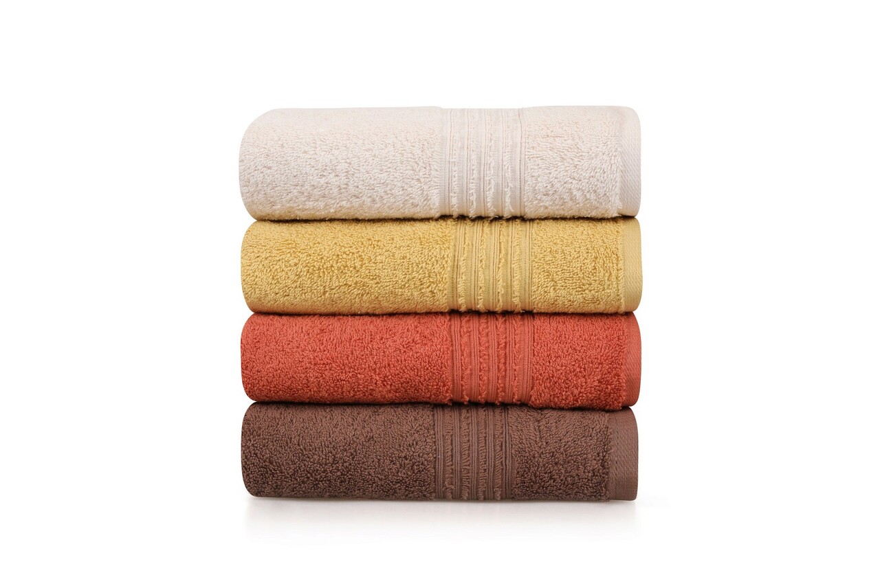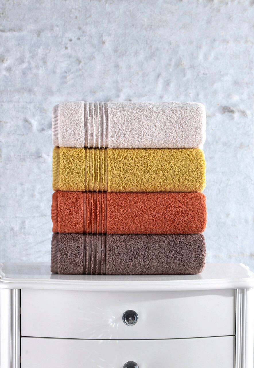Set prosoape de baie 4 piese, Cotton Box, Asorti, Bumbac, Coral / Galben / Maro / Bej