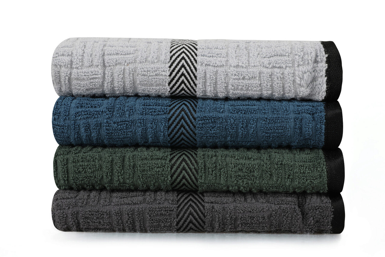 Set prosoape de baie 4 piese, Cotton Box, JAKARLI HAVLU SETI ROAD ASORTI-2, Bumbac, Albastru / Albastru închis / Verde / Antracit