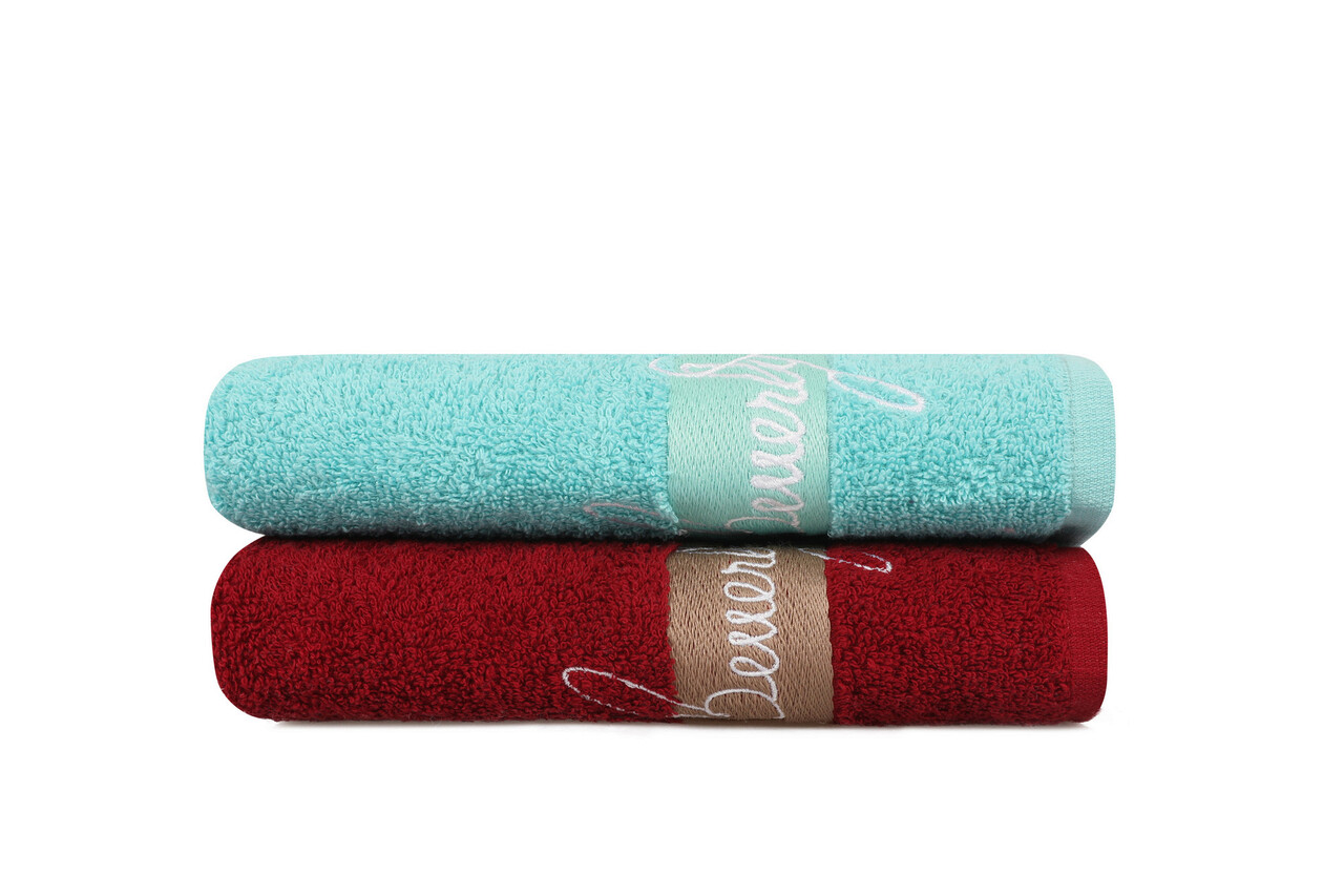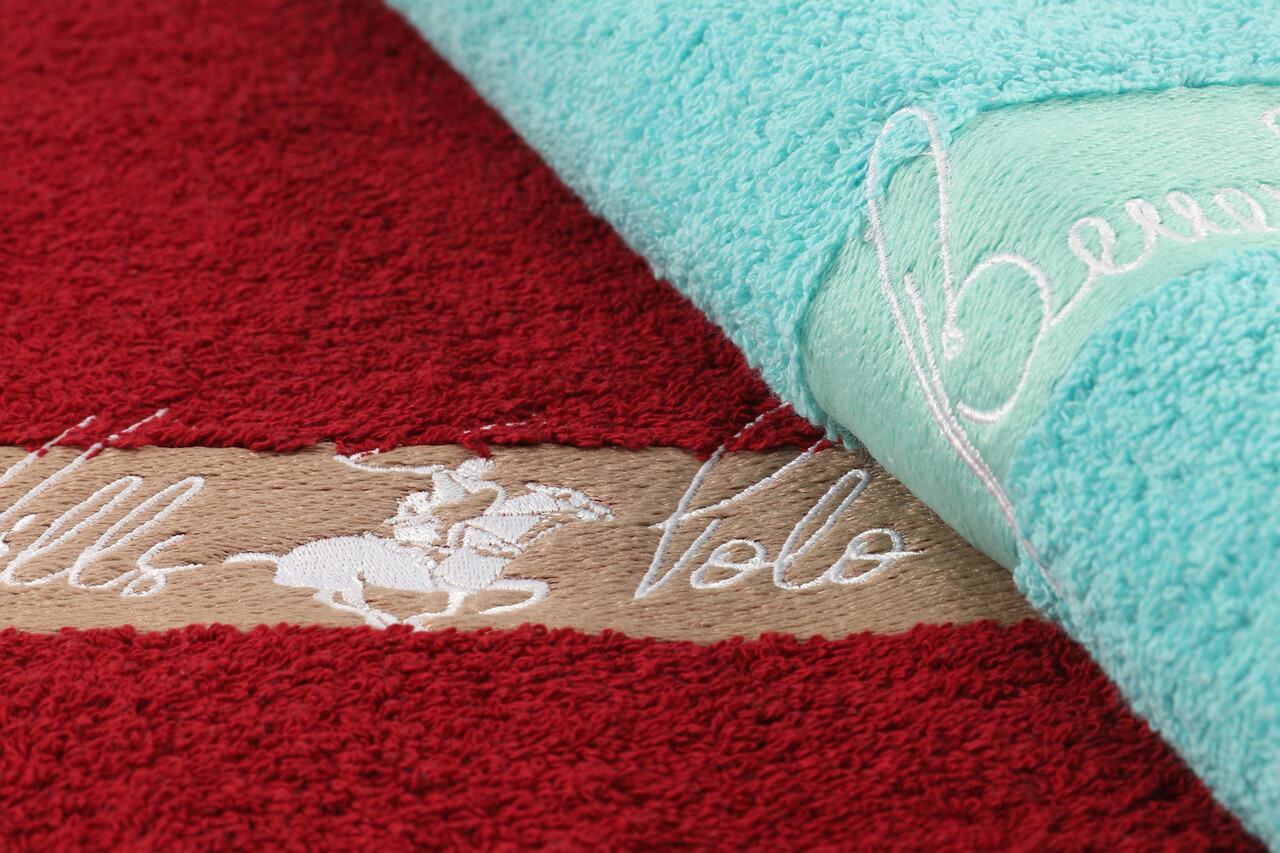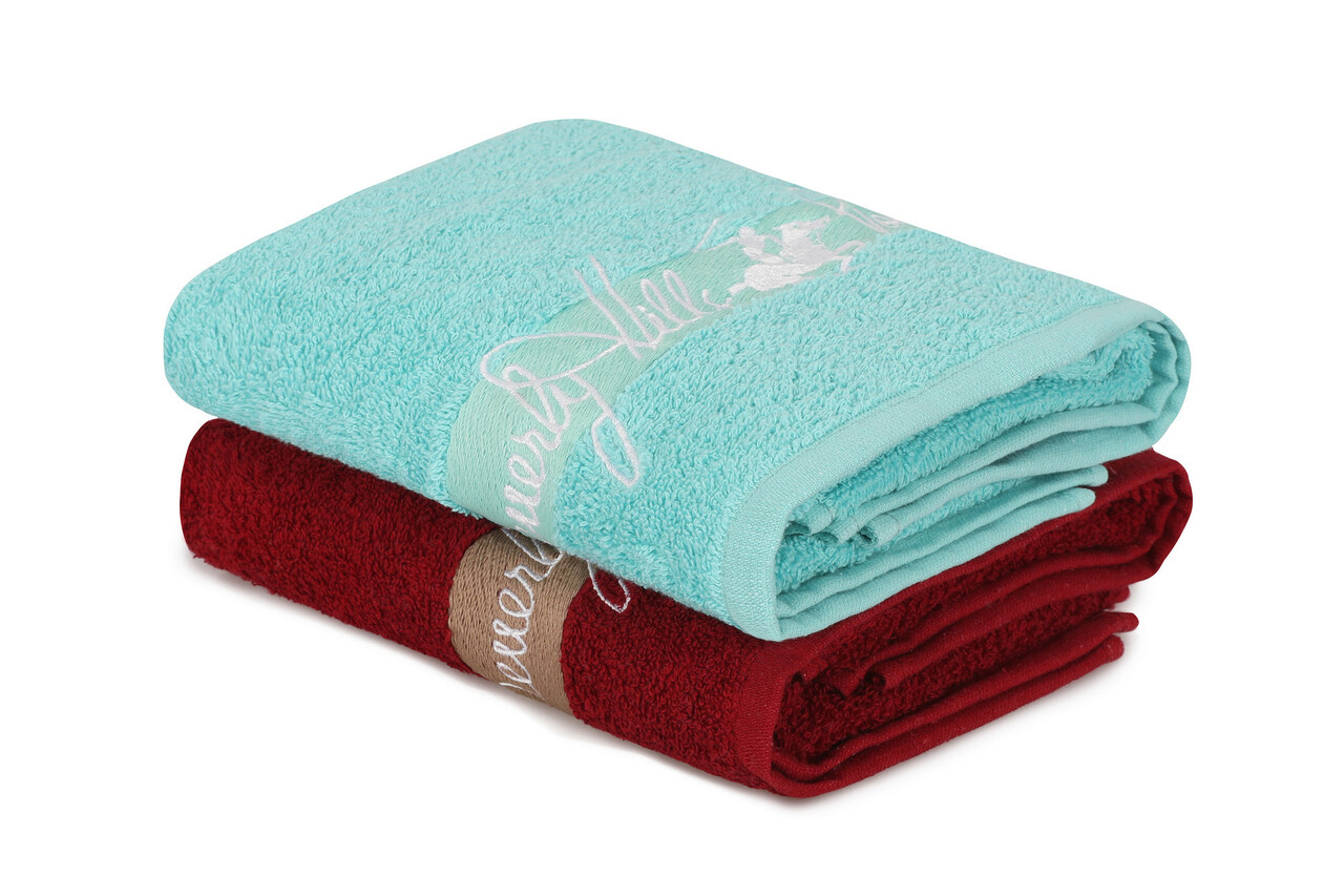 Set prosoape de maini 2 piese, Beverly Hills Polo Club, 409, Bumbac, Albastru Petrol / Roșu Claret