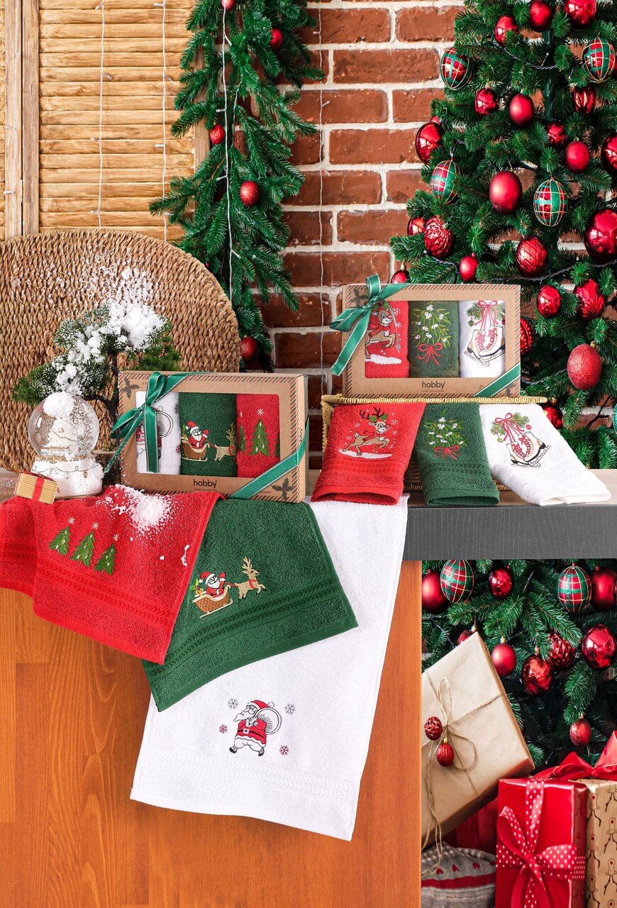 Set prosoape, L'essentiel Maison, Santa C, Verde / Roșu / Alb