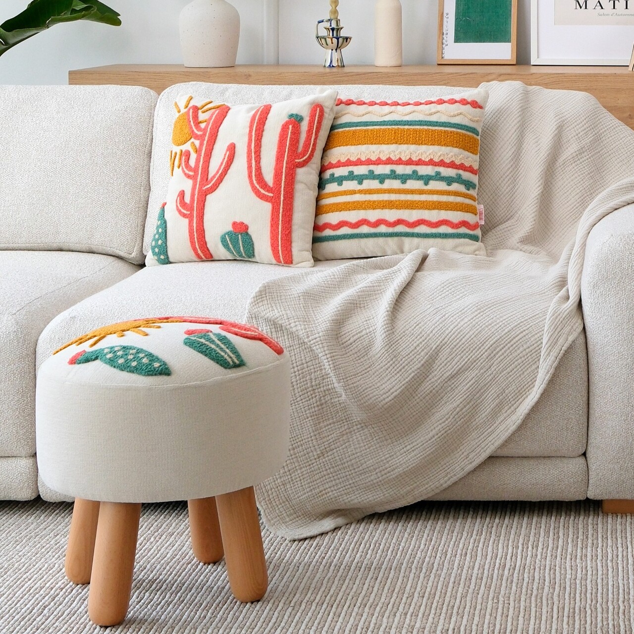 Set puf și pernă, Desert Breeze, Coral închis / Verde / Muștar / Galben