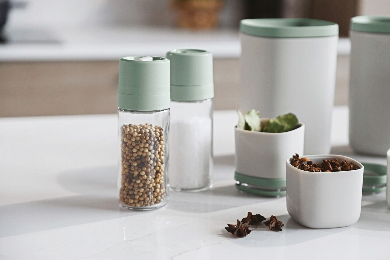 Piper, sare sau alte condimente tari, pastrati-le langa dvs. si la indemana in timpul pregatirii mesei. Datorita deschiderii mari convenabile, puteti umple cu usurinta moristile. Cu ajutorul mecanismului de macinare ceramic reglabil, puteti alege printr-o simpla miscare a incheieturii mainii daca doriti ca mirodeniile sa fie macinate fin sau grosier. Similar pentru agitator, controlati cantitatea de condimente cu ajutorul capacului rotativ in diferite moduri. Recipientele noastre sunt compatibile cu majoritatea sistemelor de separare a sertarelor disponibile pe piata si sunt perfecte pentru a va organiza bucataria! Reutilizabilitatea setului este esentiala intr-o lume mai sustenabila, in care produsele rotative sunt mai convenabile decat seturile de sare si piper de unica folosinta din supermarket. Fabricat din sticla si material plastic reciclat, acest set este absolut indispensabil in bucataria dumneavoastra!