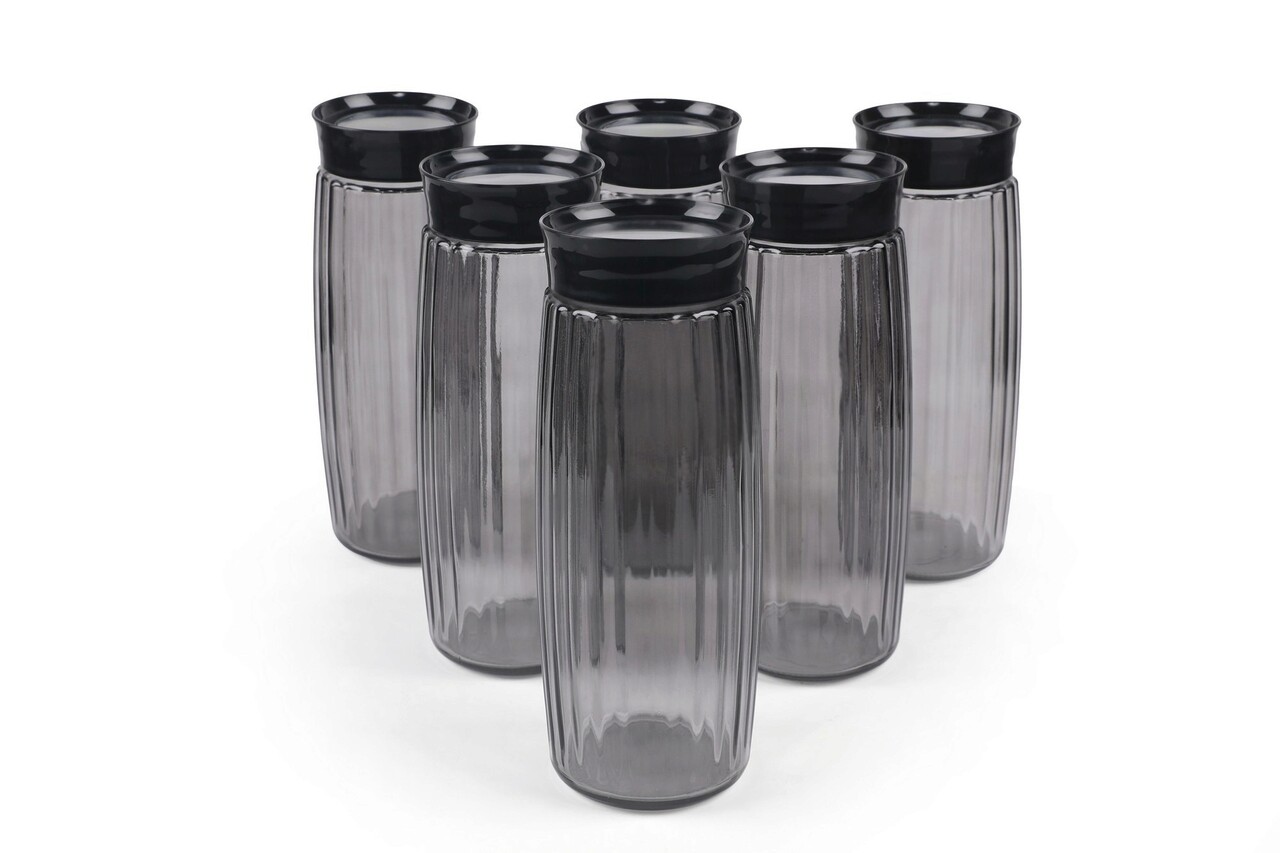 Set recipiente cu capac, QX, 430KSV3064, Sticla , 10x10x26 cm, 1.6 L, 6 piese, Antracit