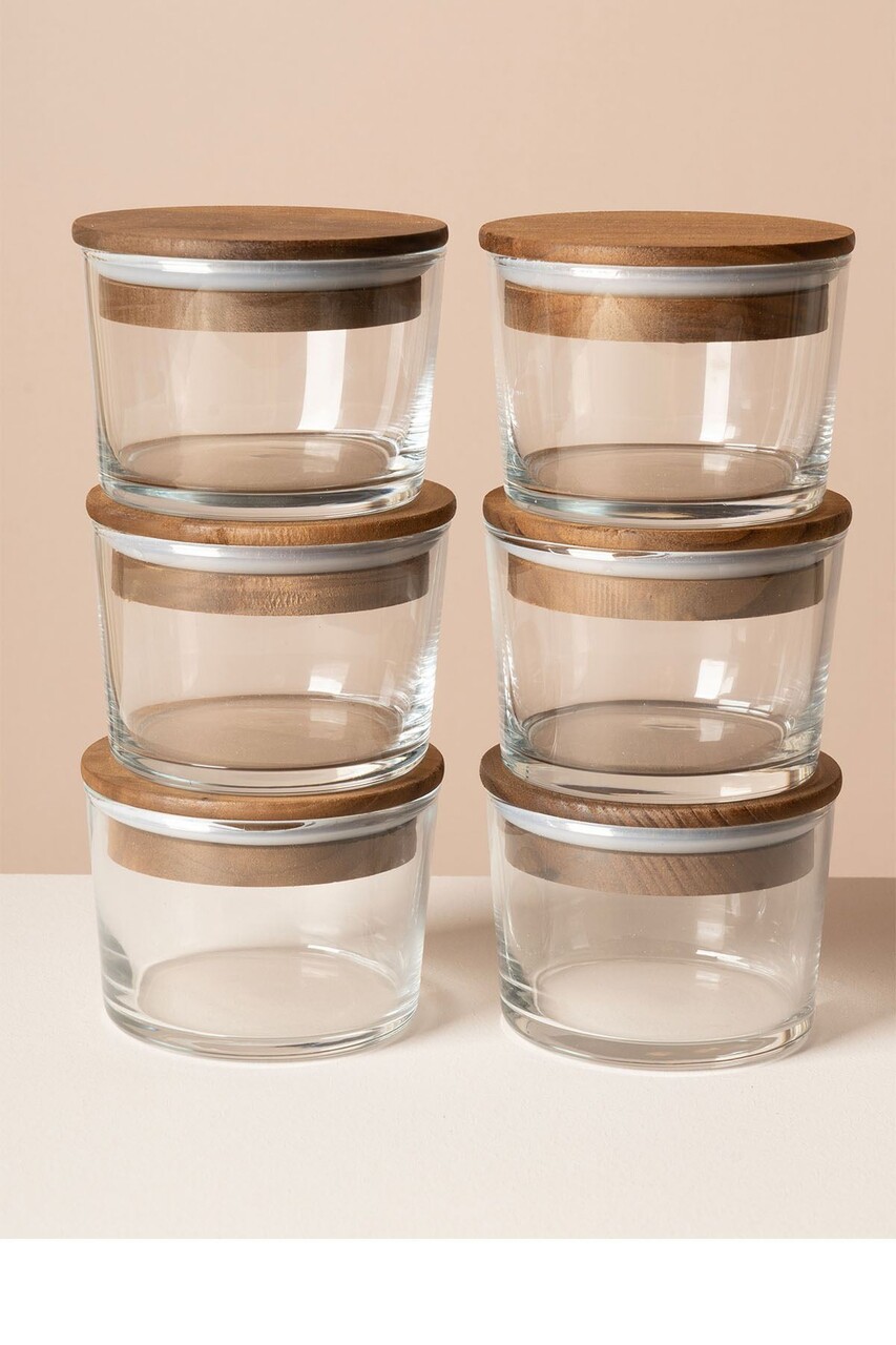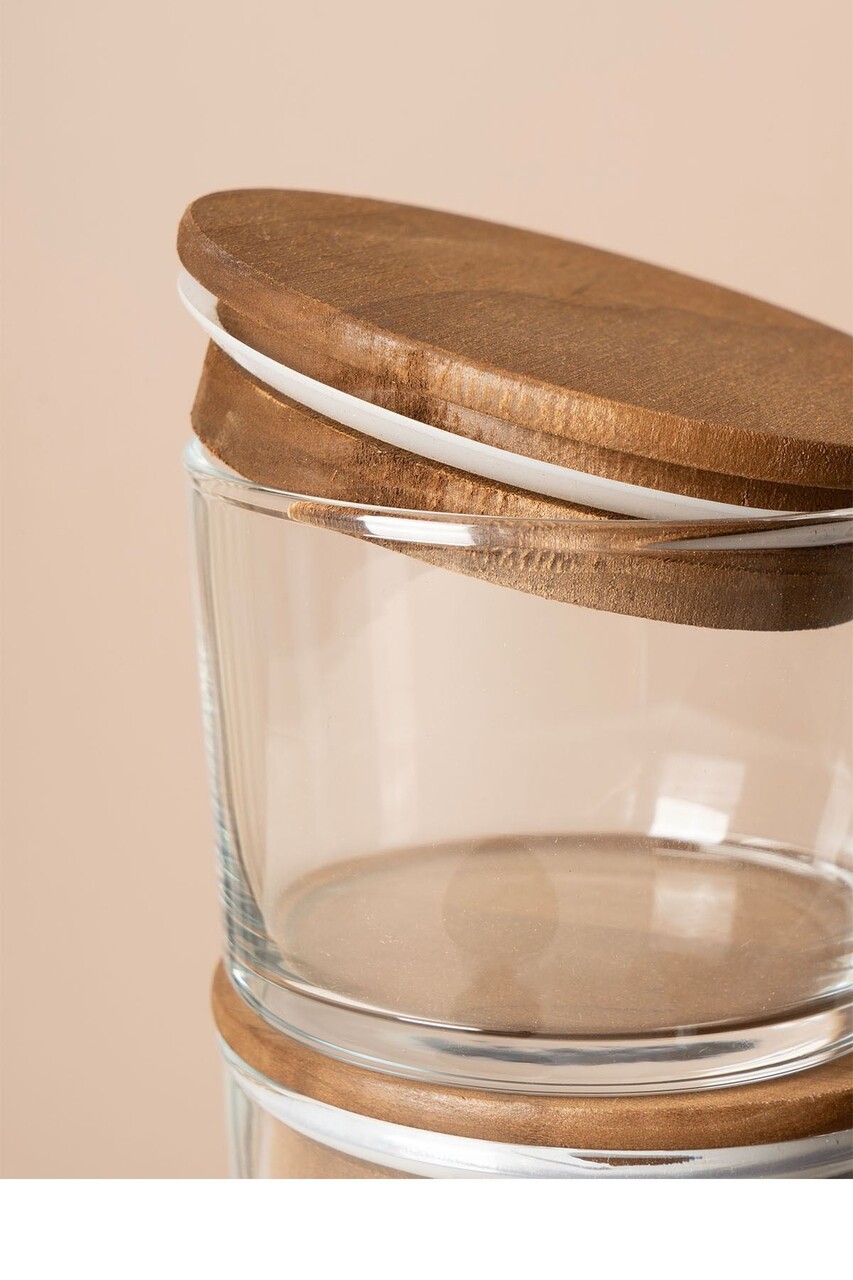 Set recipiente depozitare, Hermia, 409PBH1411, Capac din bambus: (6 bucăți), Transparent