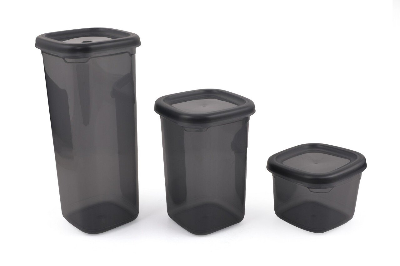 Set recipiente depozitare, Hermia, 430KSV1429, Dimensiune: 11 x 11 x 16 cm / 1200 ml (6 bucăți), Gri