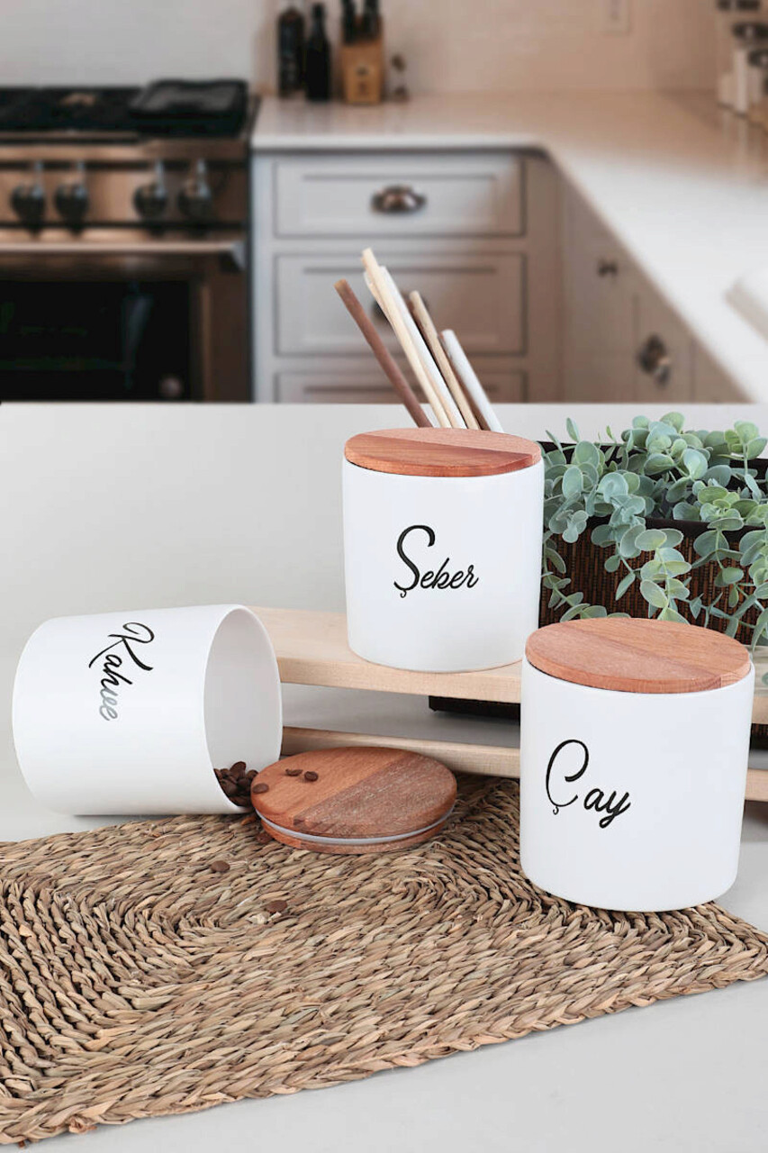 Set recipiente depozitare, Keramika, 275KRM1265, Ceramica, Alb/Negru