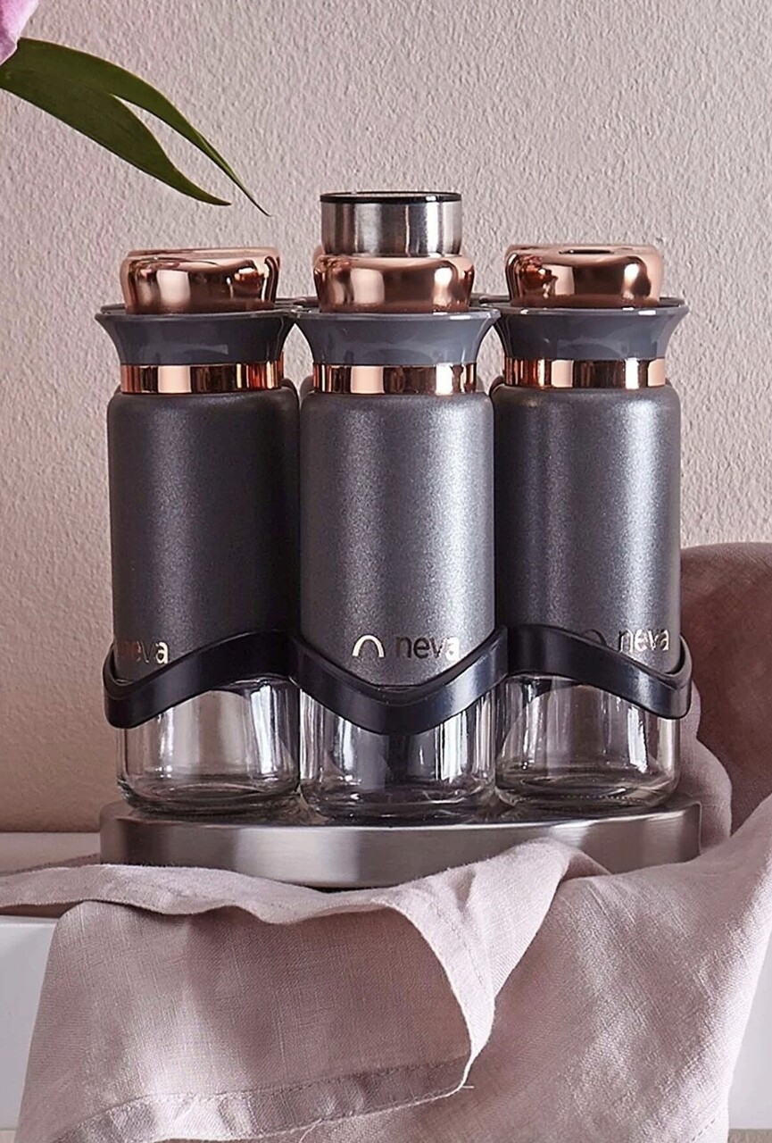 Set recipiente pentru condimente, Dynasty, 960DYN1922, Inox , 4 x 4 x 13 cm, Gri