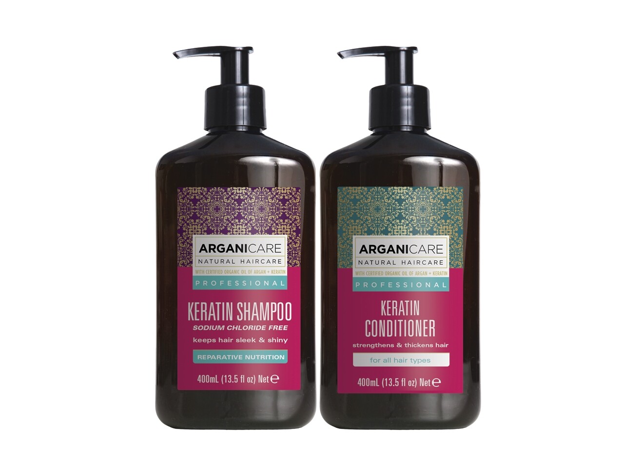 Set sampon si balsam Keratine, Arganicare, reparator si hranitor, 400 ml
