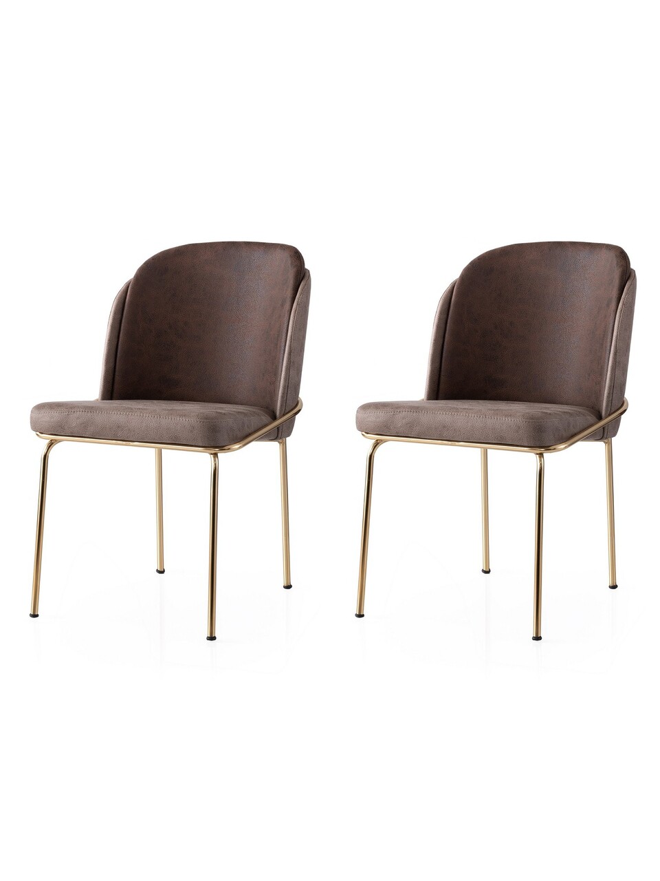 Set scaune 2 piese, Nmobb, Dore, Cadru: 100% FIER, Auriu/Maro