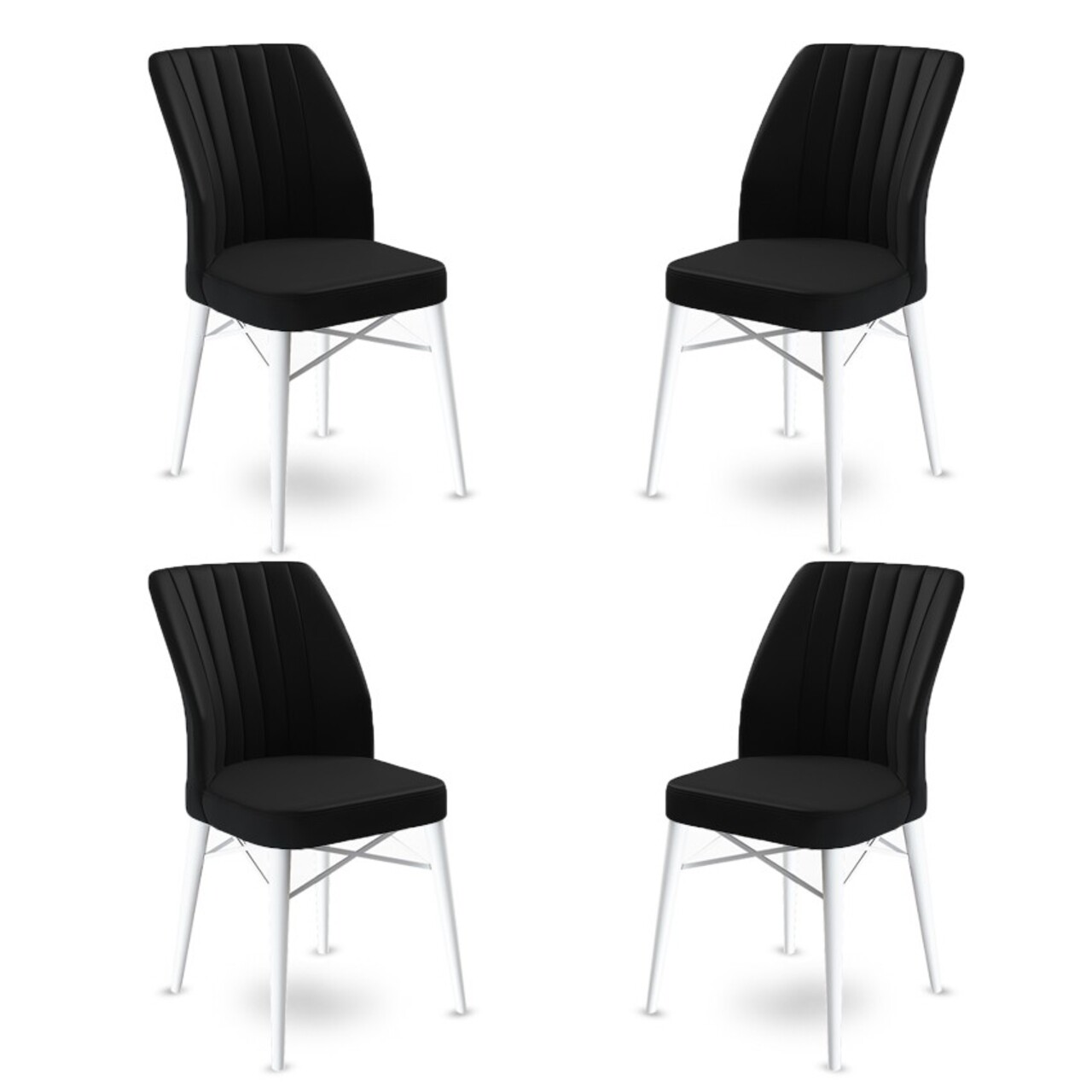 Set scaune 4 piese, Charlotte, Flex, Metal, Alb/Negru