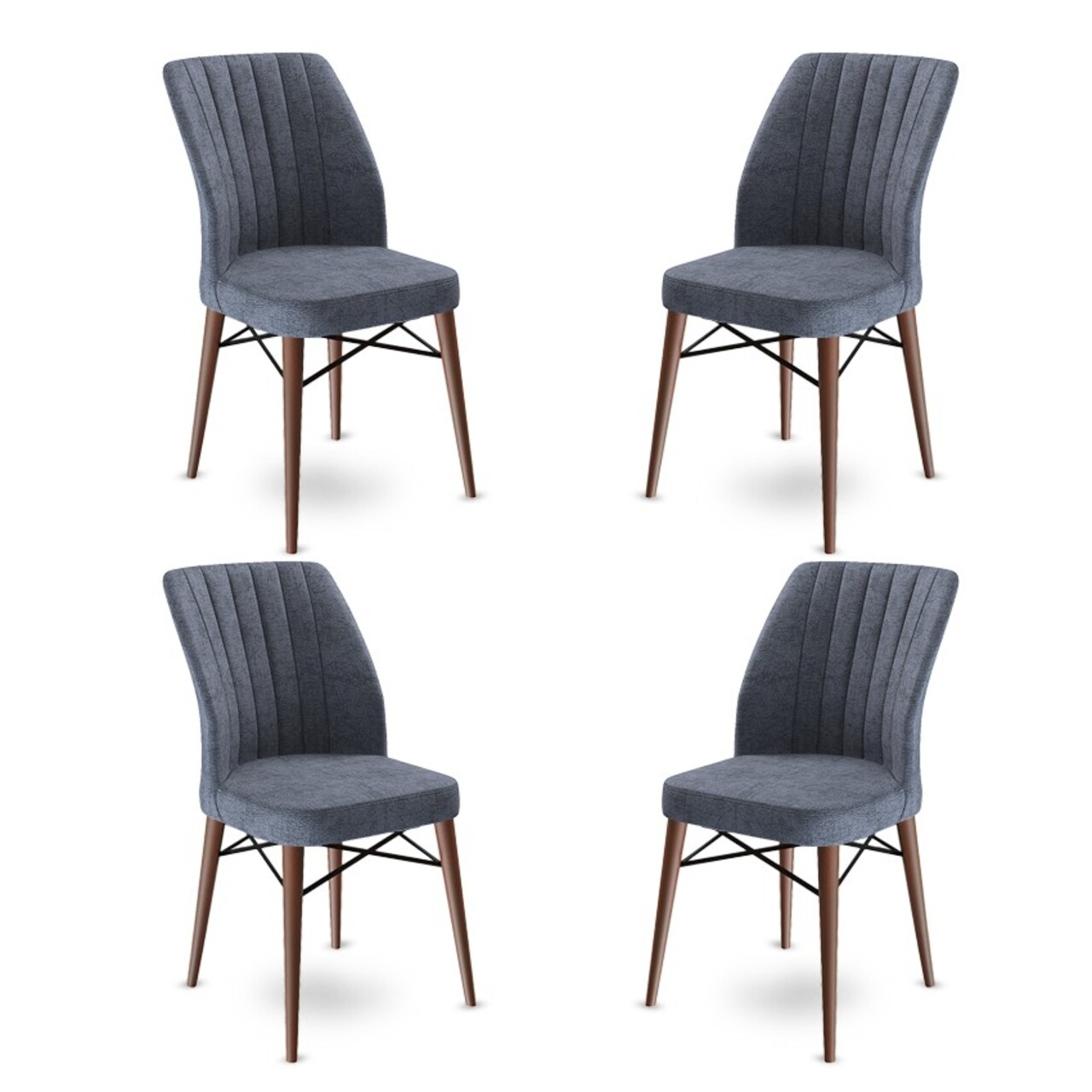 Set scaune 4 piese, Charlotte, Flex, Metal, Fume / Maro