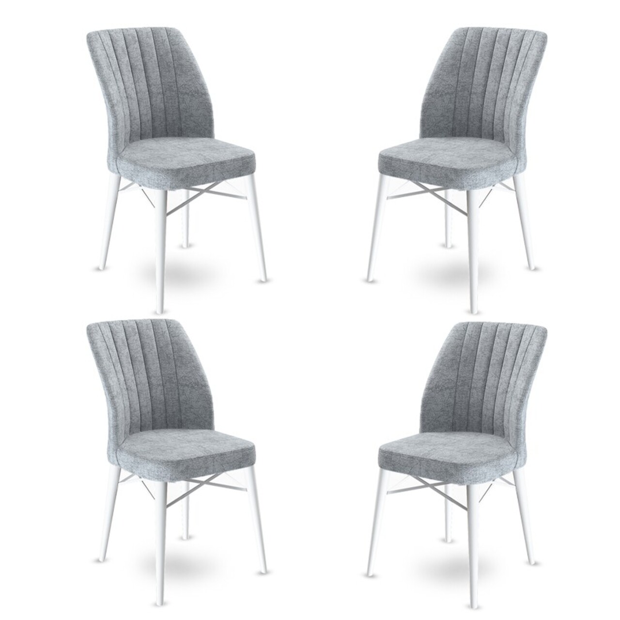 Set scaune 4 piese, Charlotte, Flex, Metal, Gri/Alb