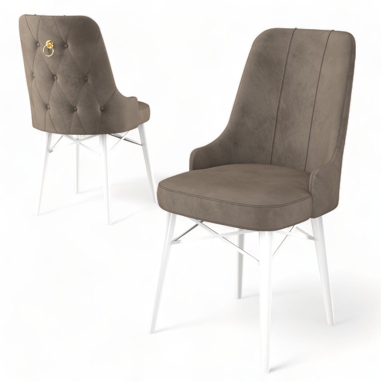Set scaune 4 piese, Hanah Home, Pare, Cappuccino / Alb