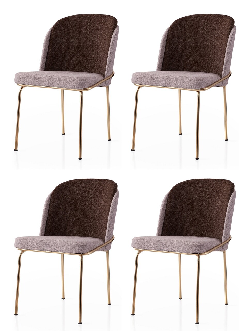 Set scaune 4 piese, Nmobb, Dore, Cadru: 100% FIER, Auriu / Maro / Nurcă