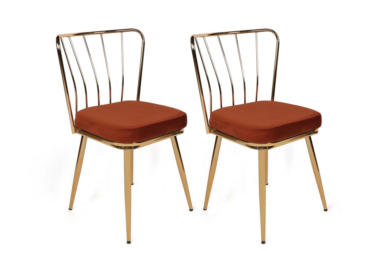 Set scaune 4 piese, Nmobb, Yıldız-925 V4, Metal, Tigla Roșu / Auriu