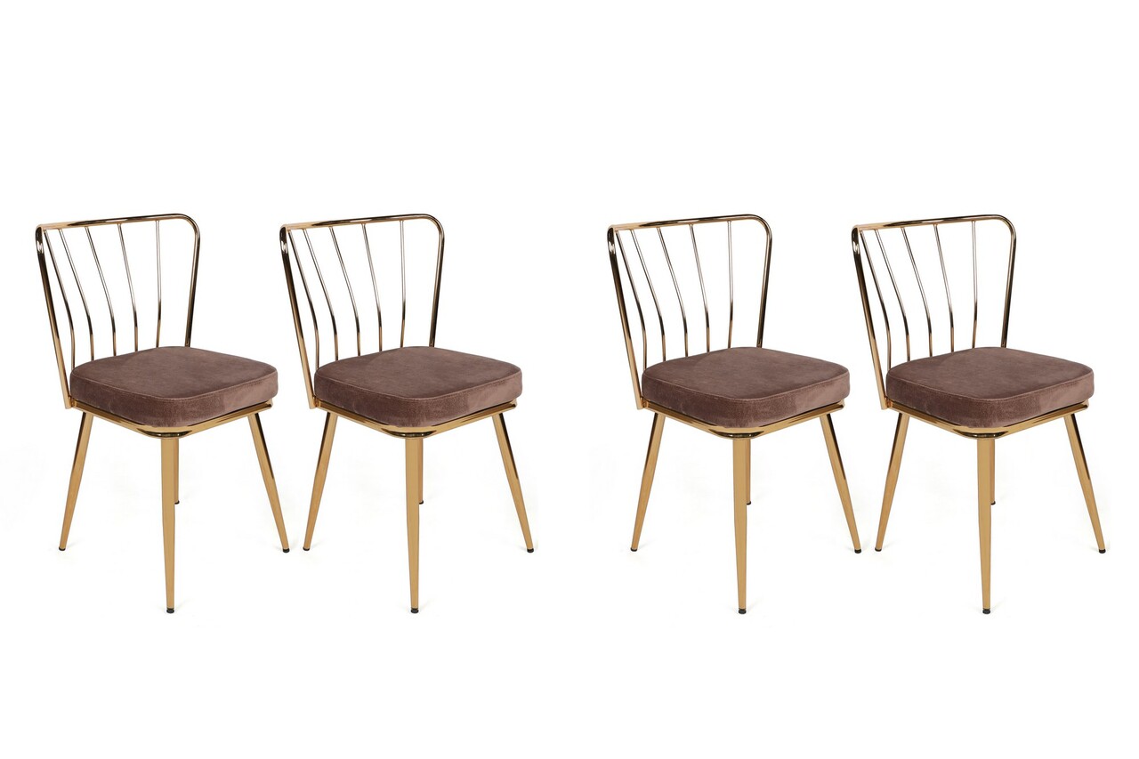 Set scaune 4 piese, Nmobb, Yıldız-927 V4, Metal, Maro deschis / Auriu