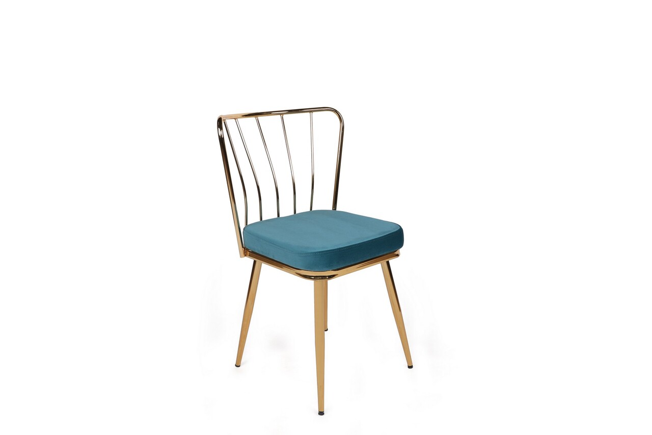 Set scaune 4 piese, Nmobb, Yıldız-929 V4, Metal, Albastru / Auriu