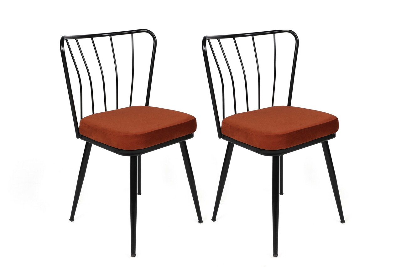 Set scaune 4 piese, Nmobb, Yıldız-945 V4, Metal, Tigla Roșu/Negru
