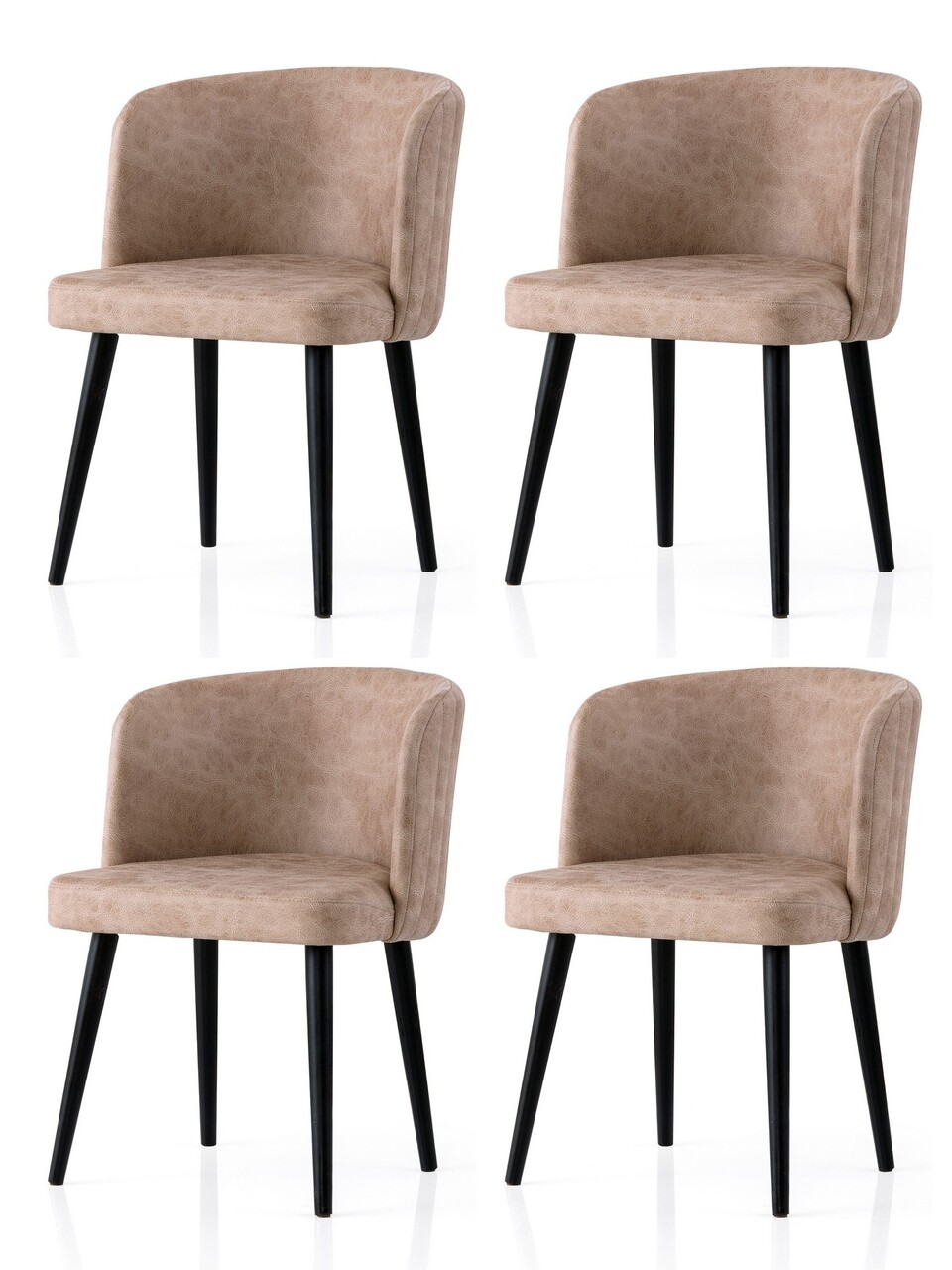 Set scaune 4 piese, Nmobb, Zen, Cadru: 100% FIER, Negru/Bej