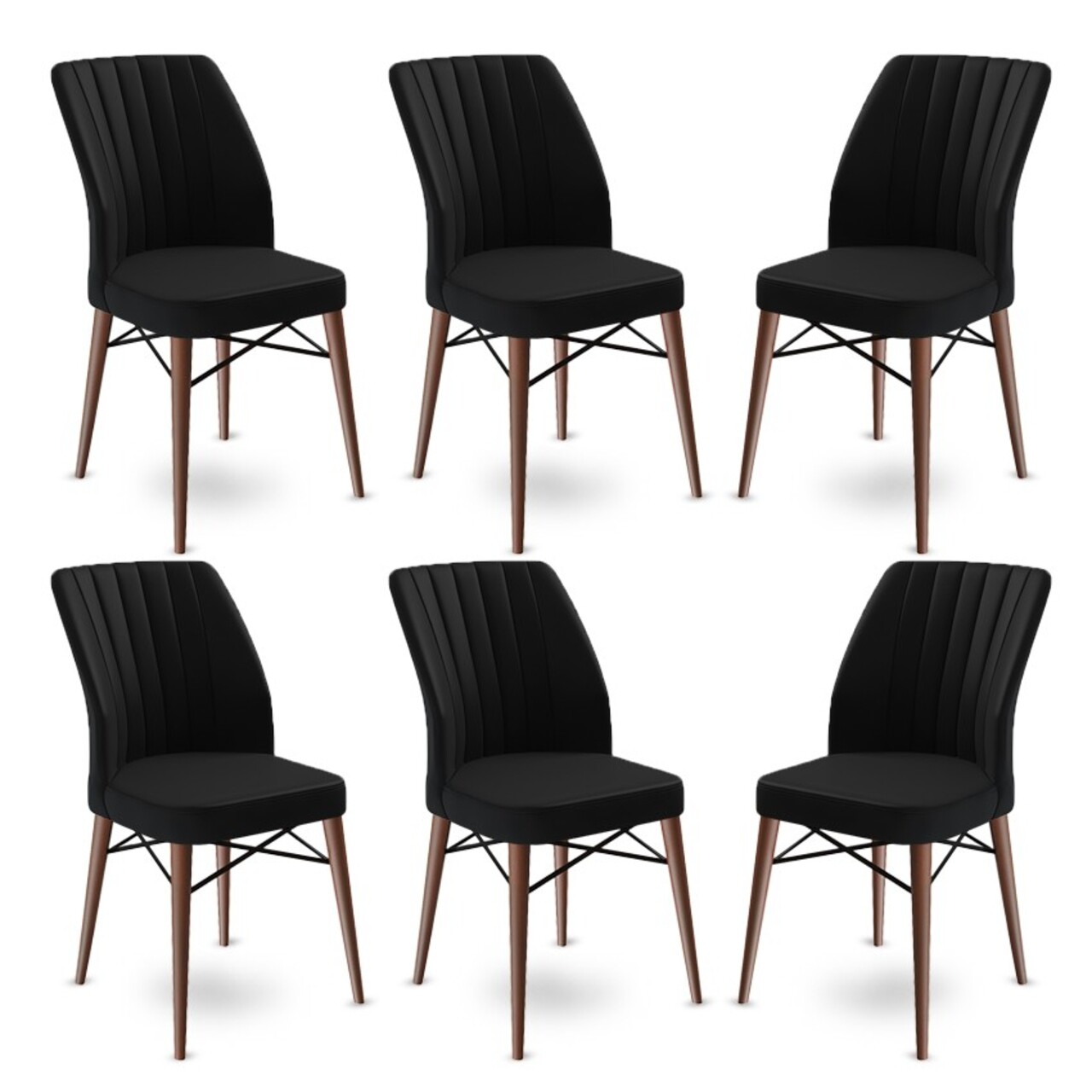 Set scaune 6 piese, Charlotte, Flex, Metal, Negru/Maro