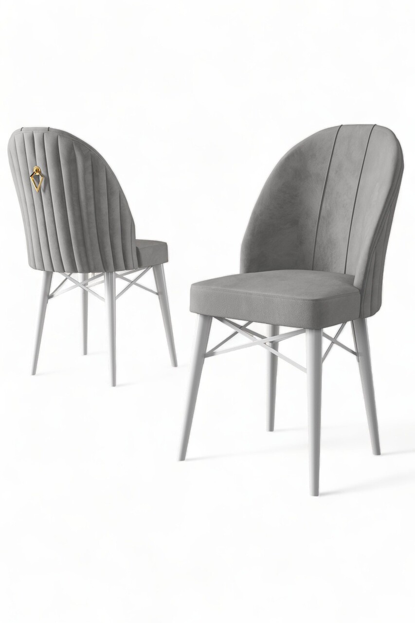 Set scaune 6 piese, Hanah Home, Ritim, Gri/Alb