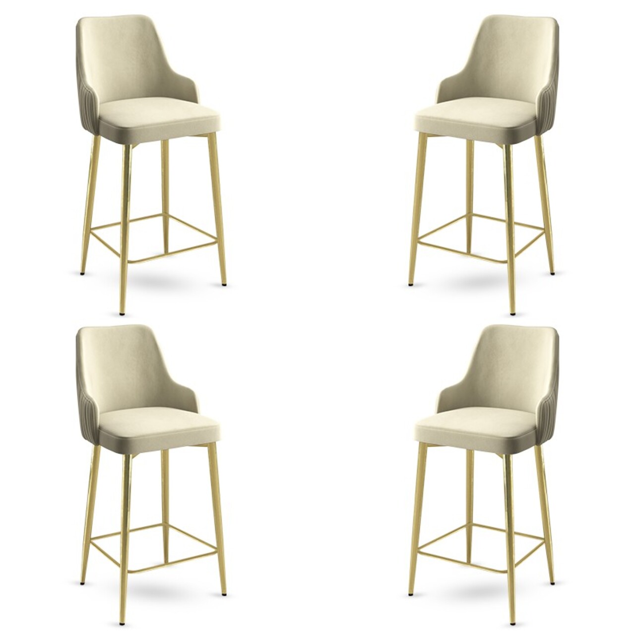 Set scaune de bar 4 piese, Charlotte, Enox, Metal, Crem / Aur