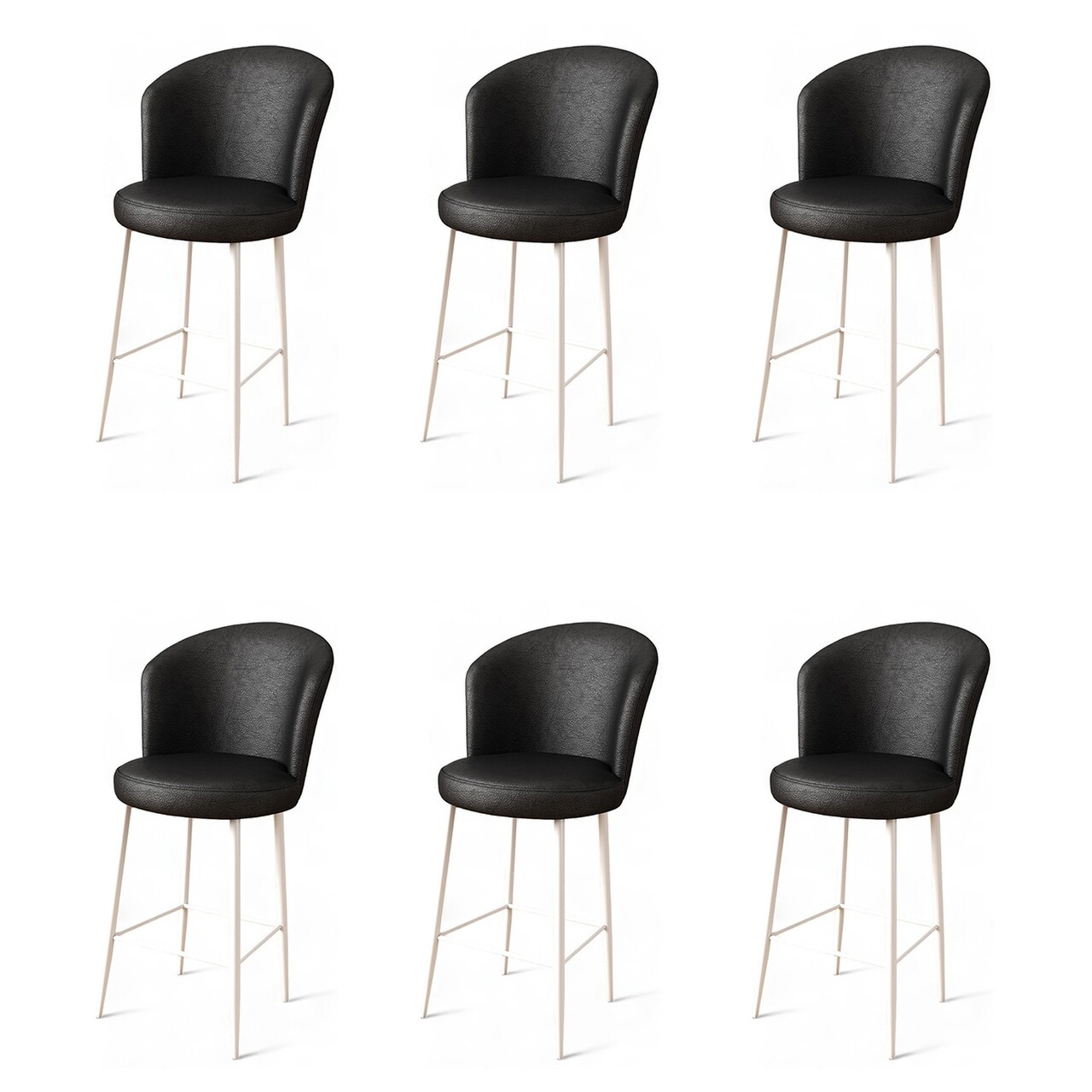 Set scaune de bar 6 piese, Charlotte, Uras, Metal, Alb/Negru