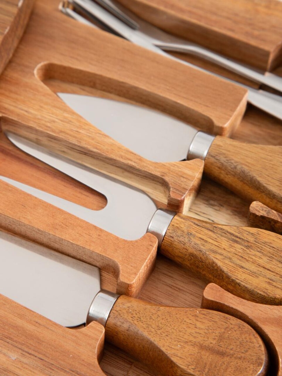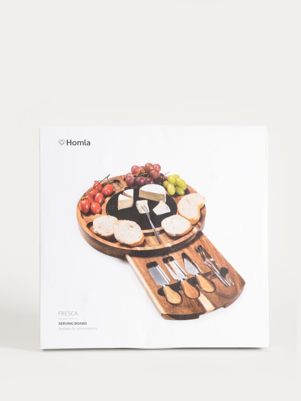 Set servire branzeturi 6 piese Fresca, Homla, lemn/portelan/inox, natur/negru