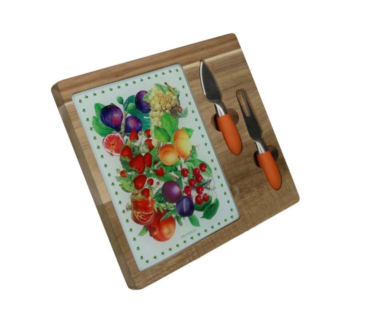 Set servire branzeturi, tocator si cutite, Le Primizie, Brandani, 23x26 cm, lemn de salcam/sticla