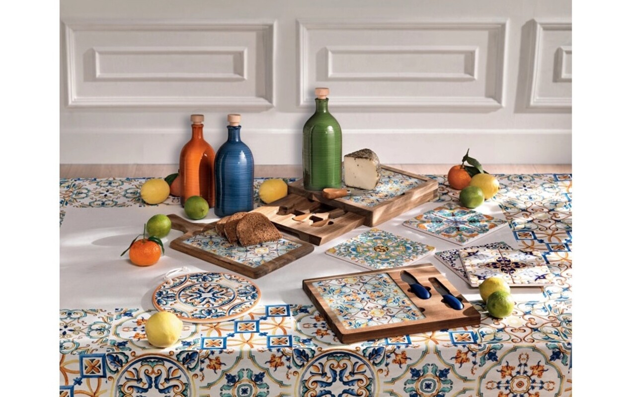 Set servire branzeturi, tocator si cutite, Medicea, Brandani, 24x24 cm, lemn de salcam/ceramica/inox