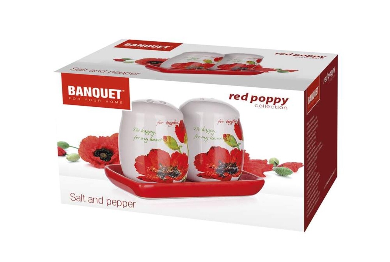 Set solnita si pipernita in suport Red Poppy, Banquet, ceramica